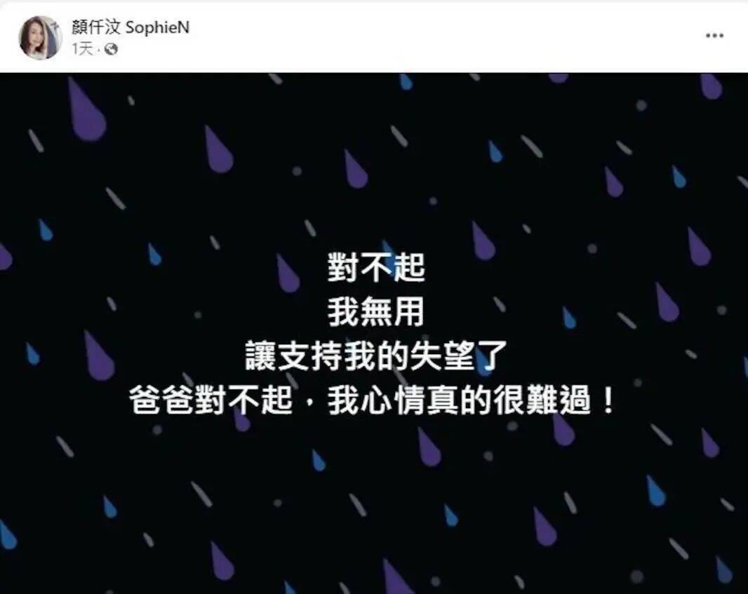 最近因为未能入围,8年前便患过抑郁症的她似乎大受打击,在网上放负:「对不起,我无用。」