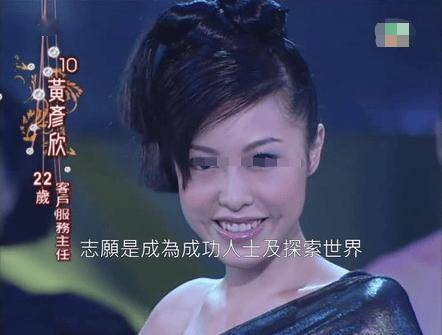 太太黄彦欣呢,其实也参选过2007年的「香港小姐」,同届的前三甲分别是张嘉儿、王君馨和周美欣,不过10号的黄彦欣最后未能进入最后决赛。